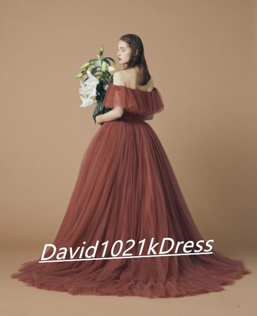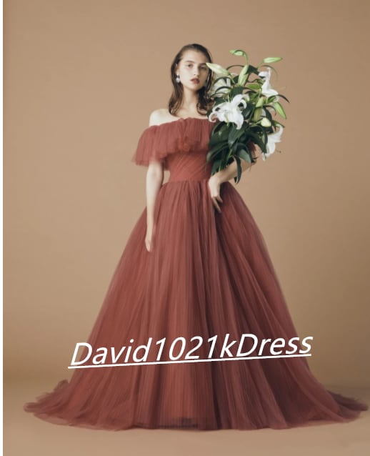 カラードレス テラコッタ色 取り外しオフショルダー 前撮り 挙式