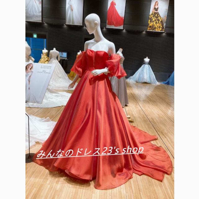カラードレス オレンジ ベアトップ パフスリーブ トレーン 花嫁