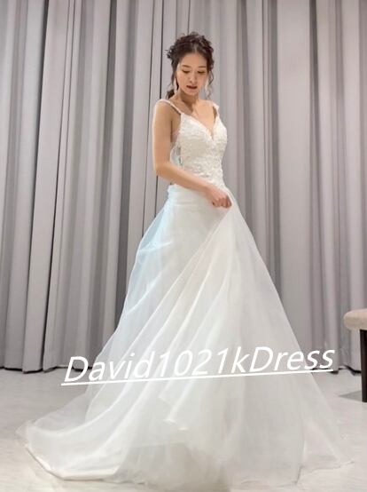高品質! ウェディングドレス 背中見せ 3D立体レース刺繍 前撮り