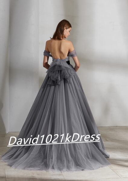 2waysドレス グレーカラードレス パーティードレス 結婚式 オフショルダー イブニングドレス