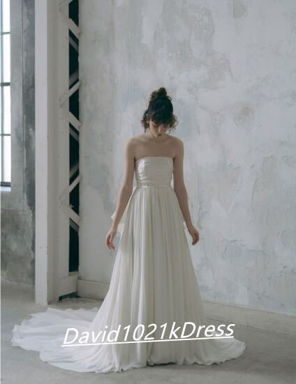 エレガント ウェディングドレス ベアトップ トレーン 前撮り 花嫁