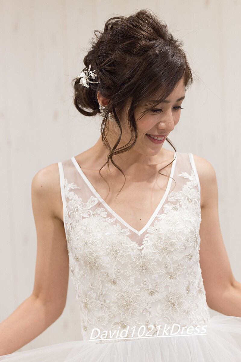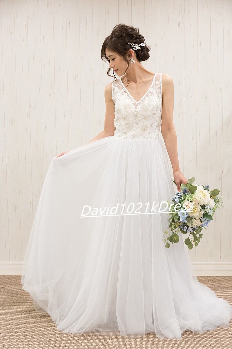 オンショルダードレス ウェディングドレス 3D立体レース刺繍 前撮り