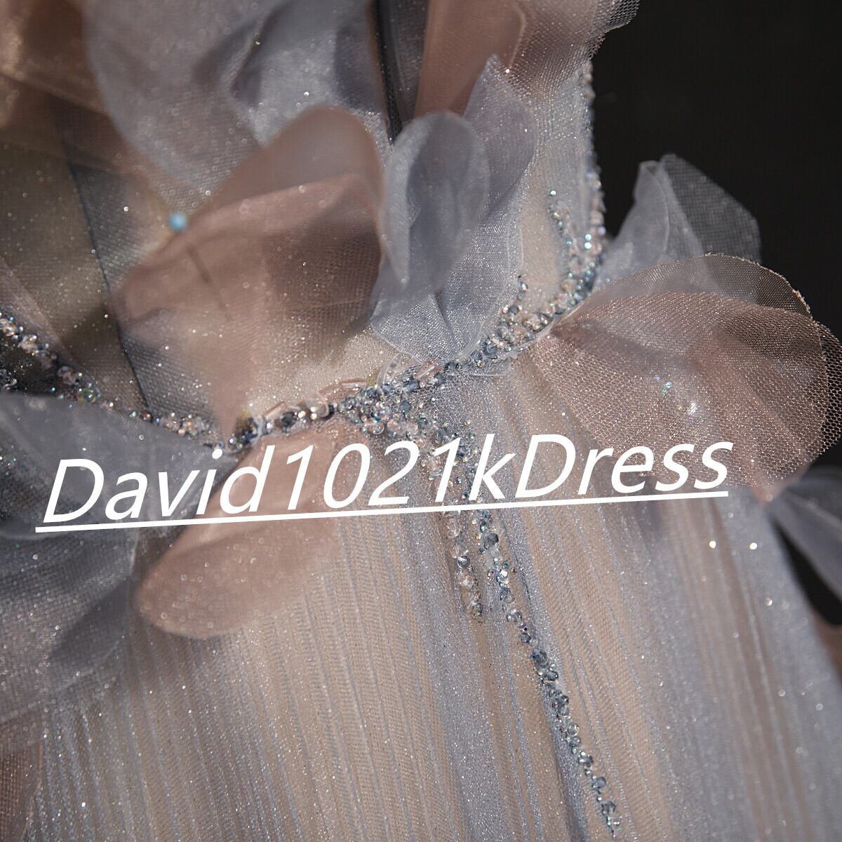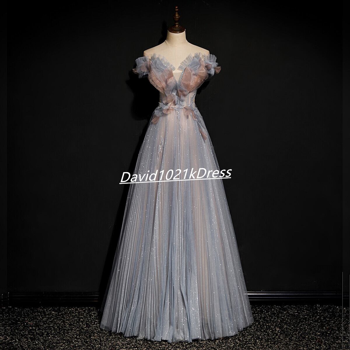 高品質!パーティードレス イブニングドレス ブルーグレー キラキラチュール 結婚式