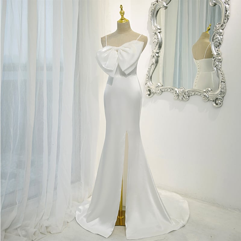 キャミソール 大きなリボン パーティードレス スリット 2次会