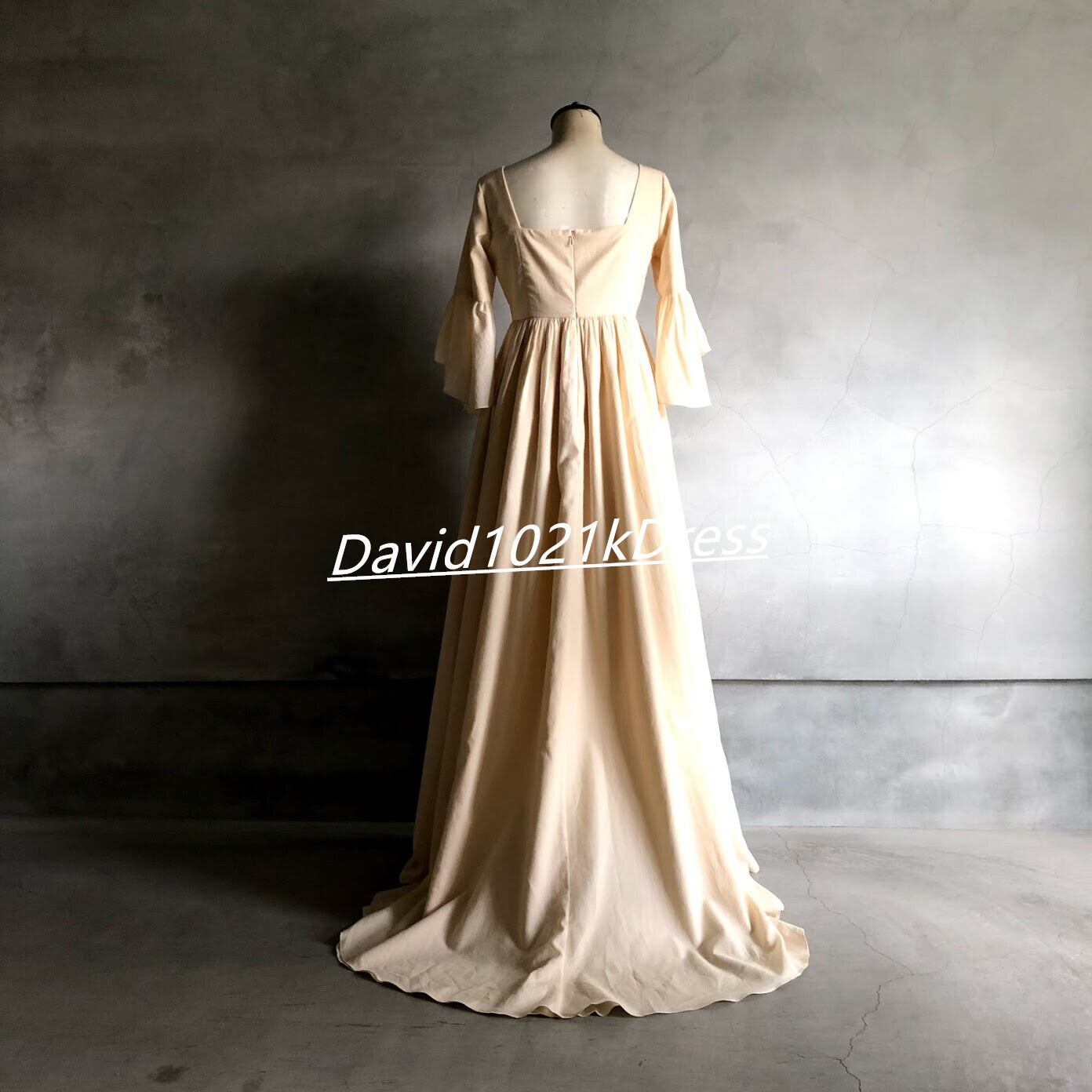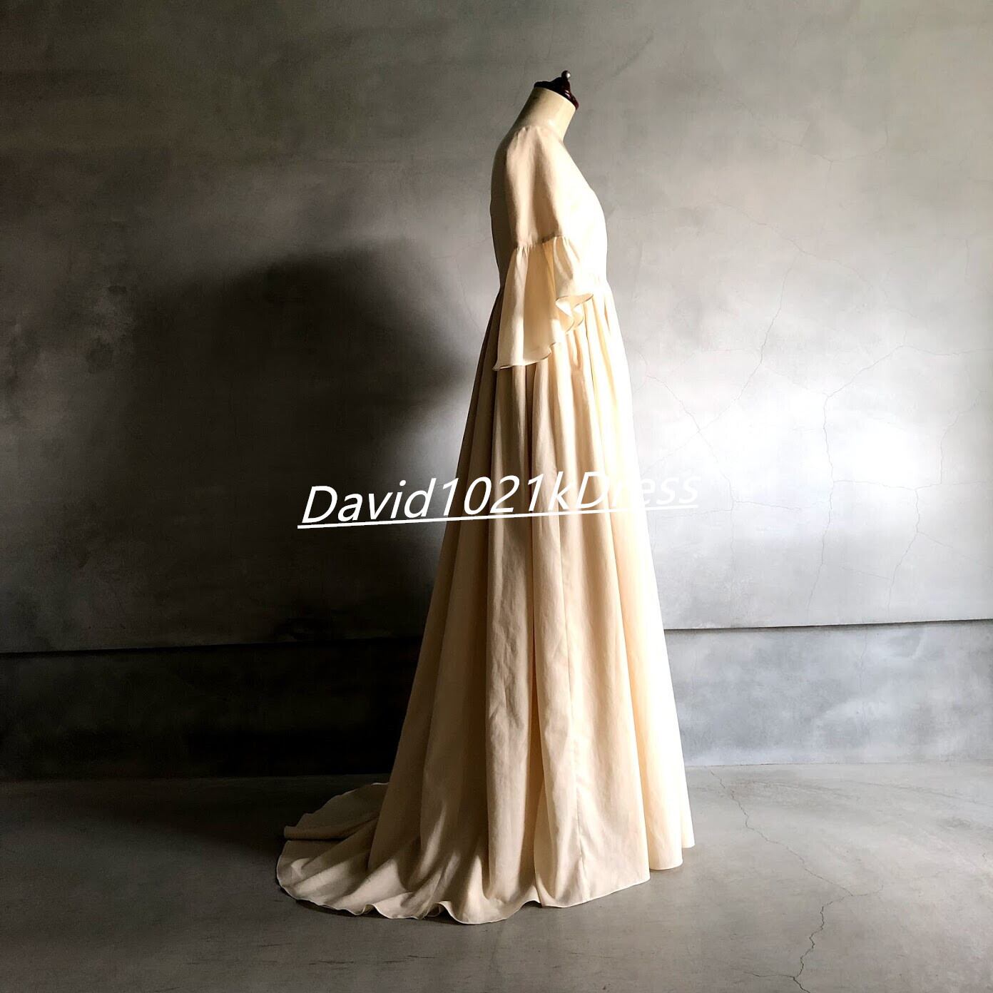 エレガント パーティードレス シャンパン色 前撮り トレーン 2次会