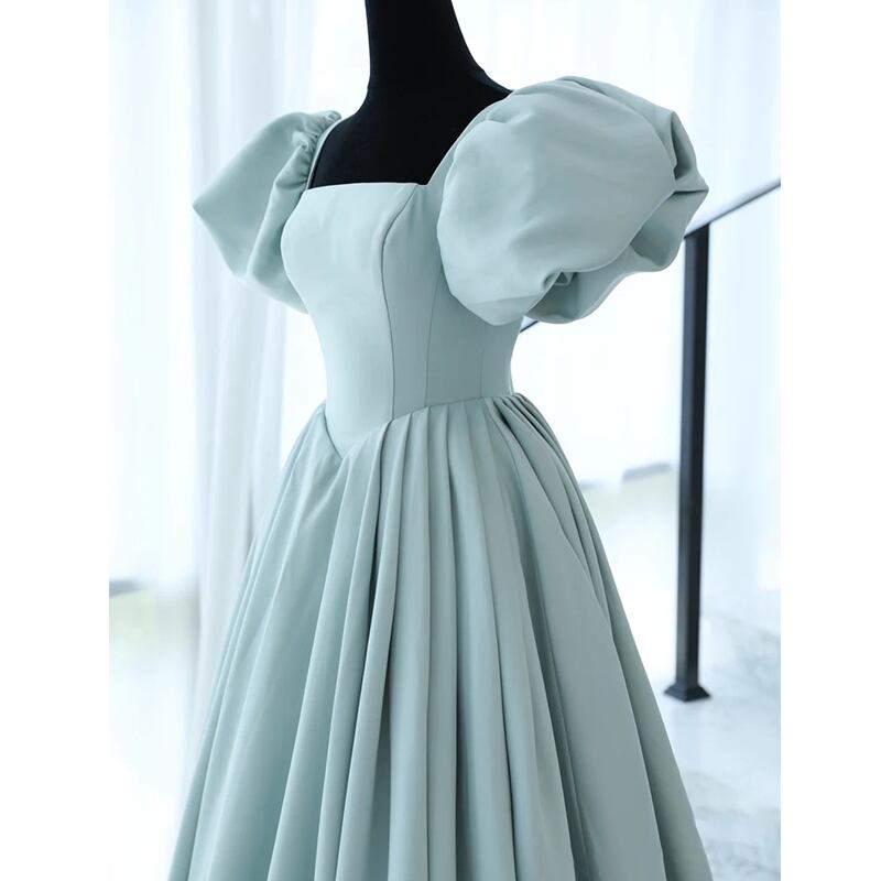 上品! パーティードレス 水色 背中見せ パフスリーブ 2次会