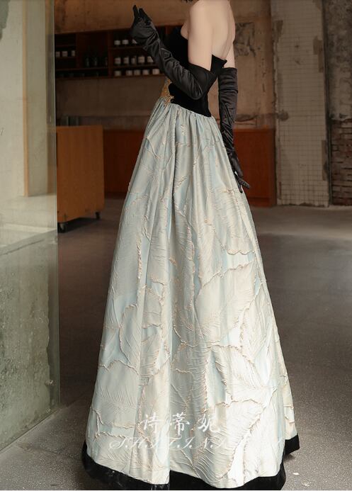 高品質! パーティードレス 黑 ベアトップ ロング 前撮り 花嫁