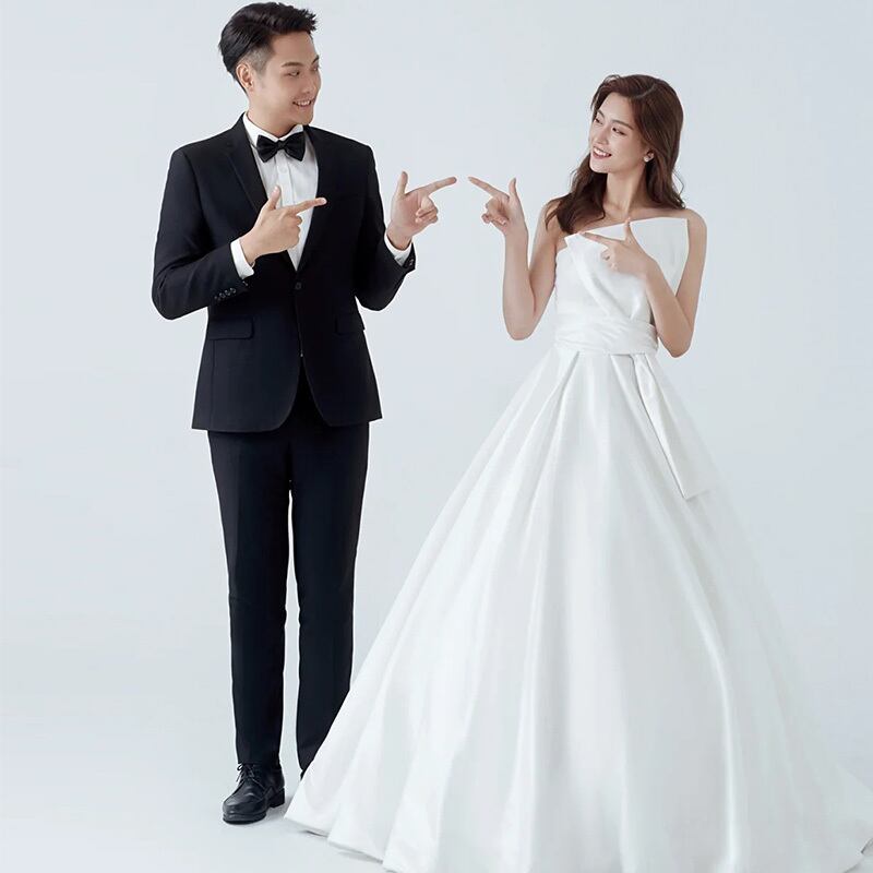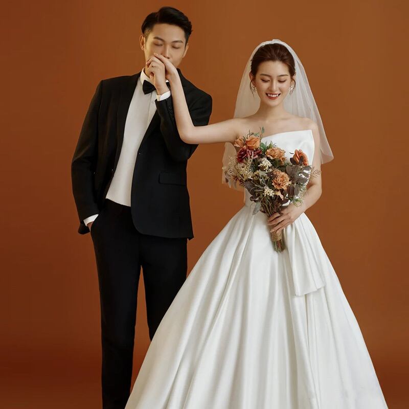 フランス風 ウエディングドレス オフホワイト ベアトップ 結婚式/披露宴