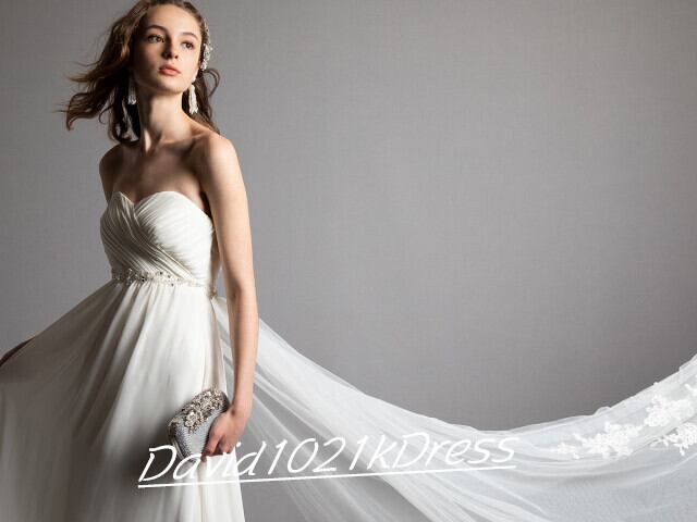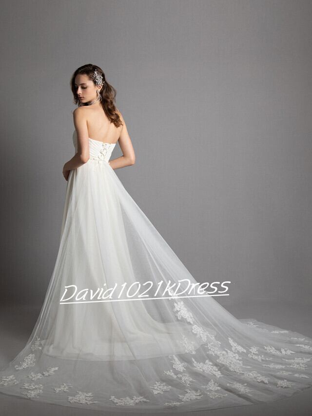 エレガント ウエディングドレス ロングトレーン ベアトップ 前撮り