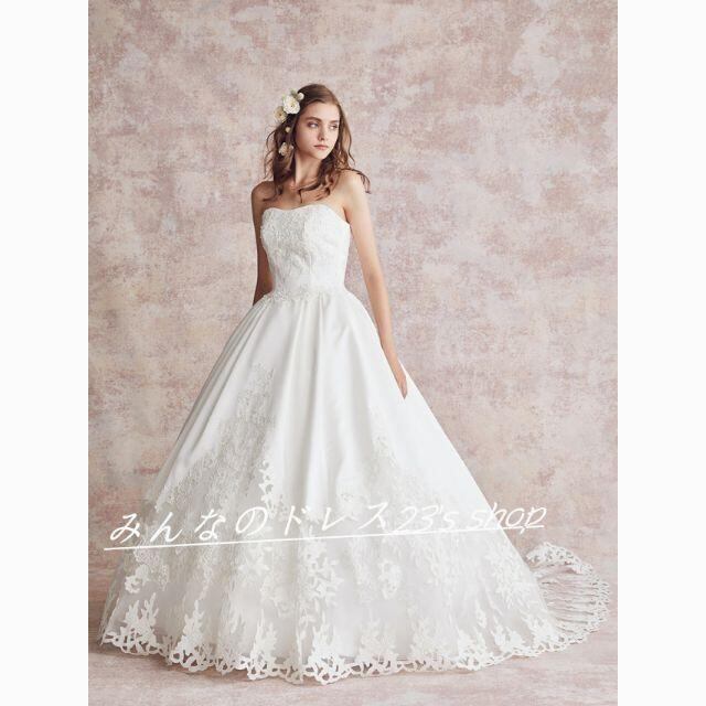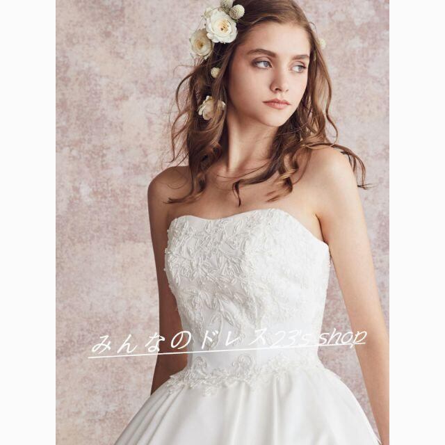 高品質! ウェディングドレス 3D立体レース刺繍 ベアトップ 挙式