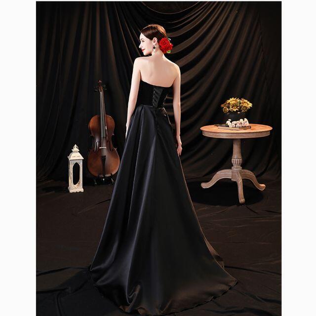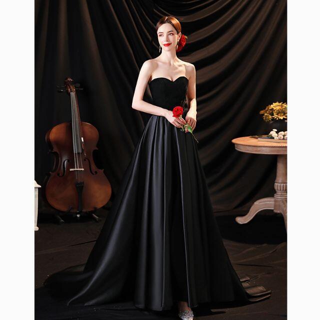 上品! パーティードレス 黑 ベアトップ トレーン 前撮り