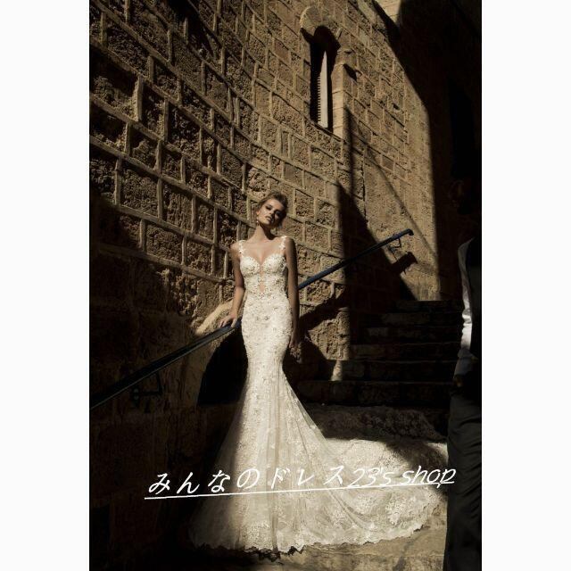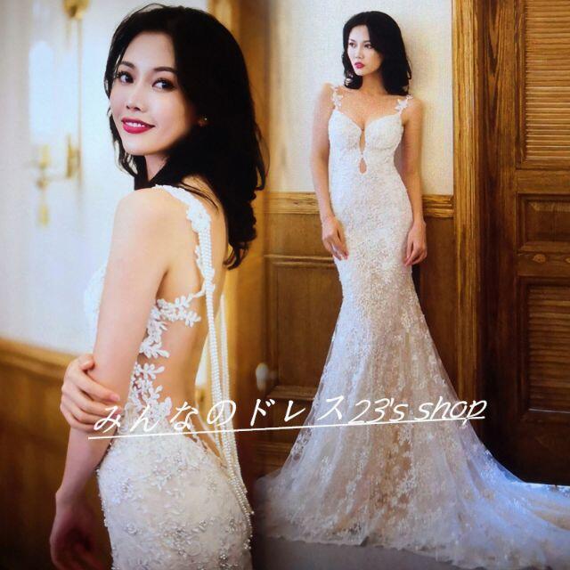 豪華! ウェディングドレス 3D立体レース刺繍 パール トレーン