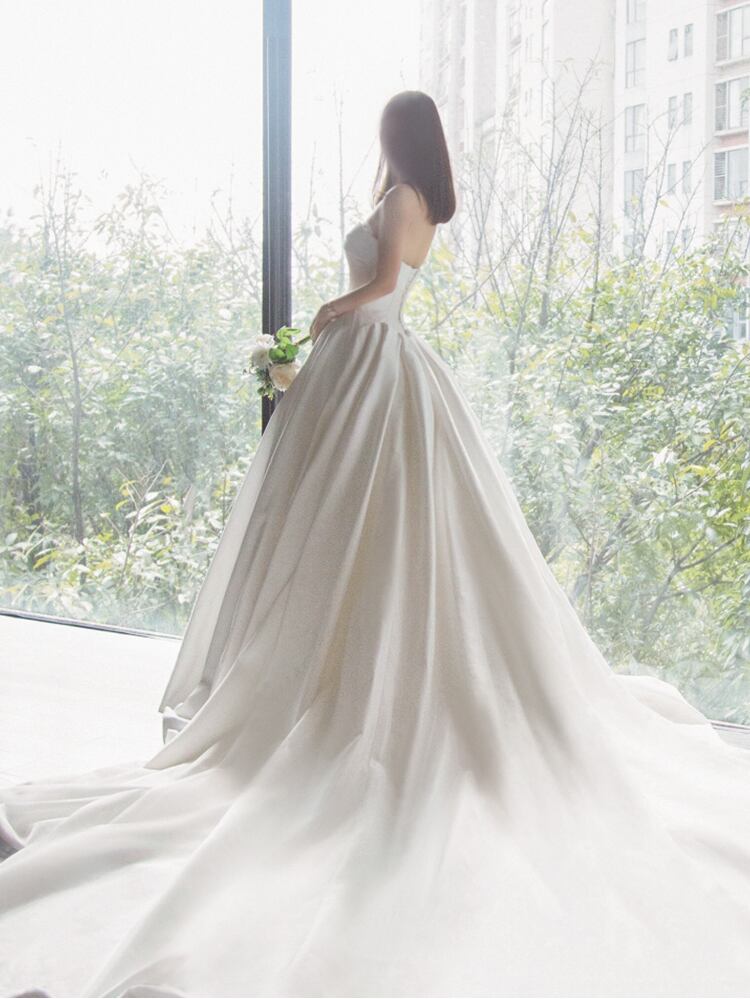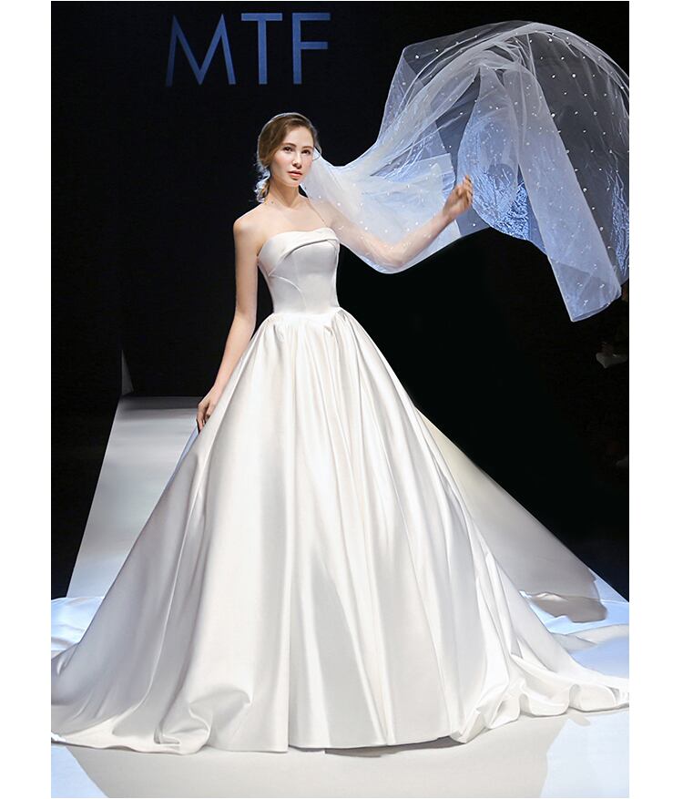 高品質! ウェディングドレス ロングトレーン ベアトップ 結婚式