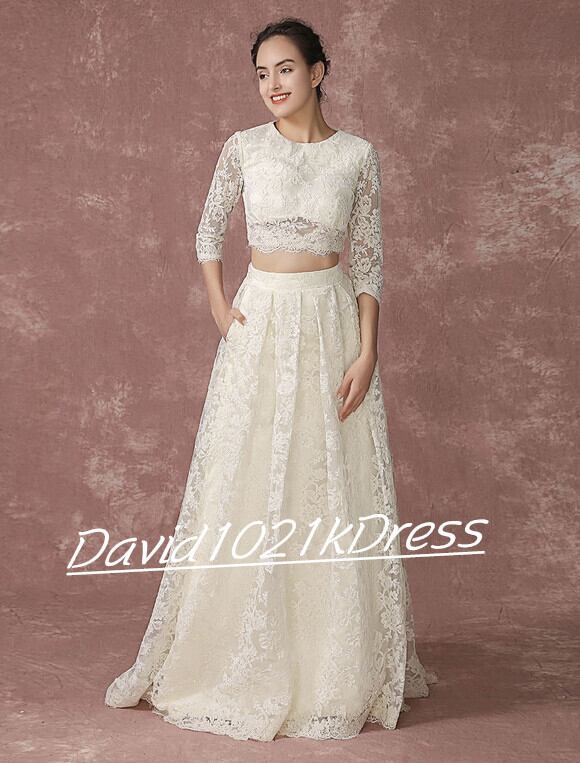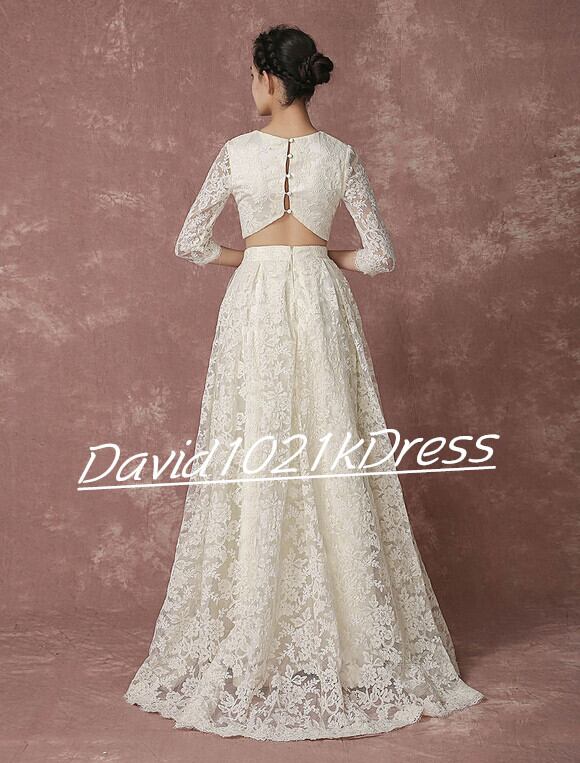 高品質! ウェディングドレス 3D立体レース刺繍 セパレート 2点セット