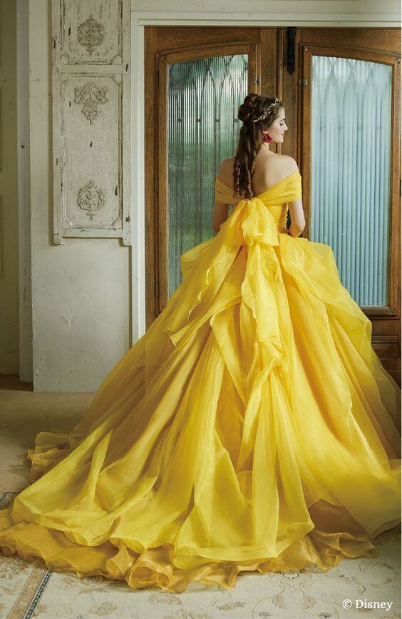 カラードレス イエロー 大人気上昇 オフショルダー 挙式
