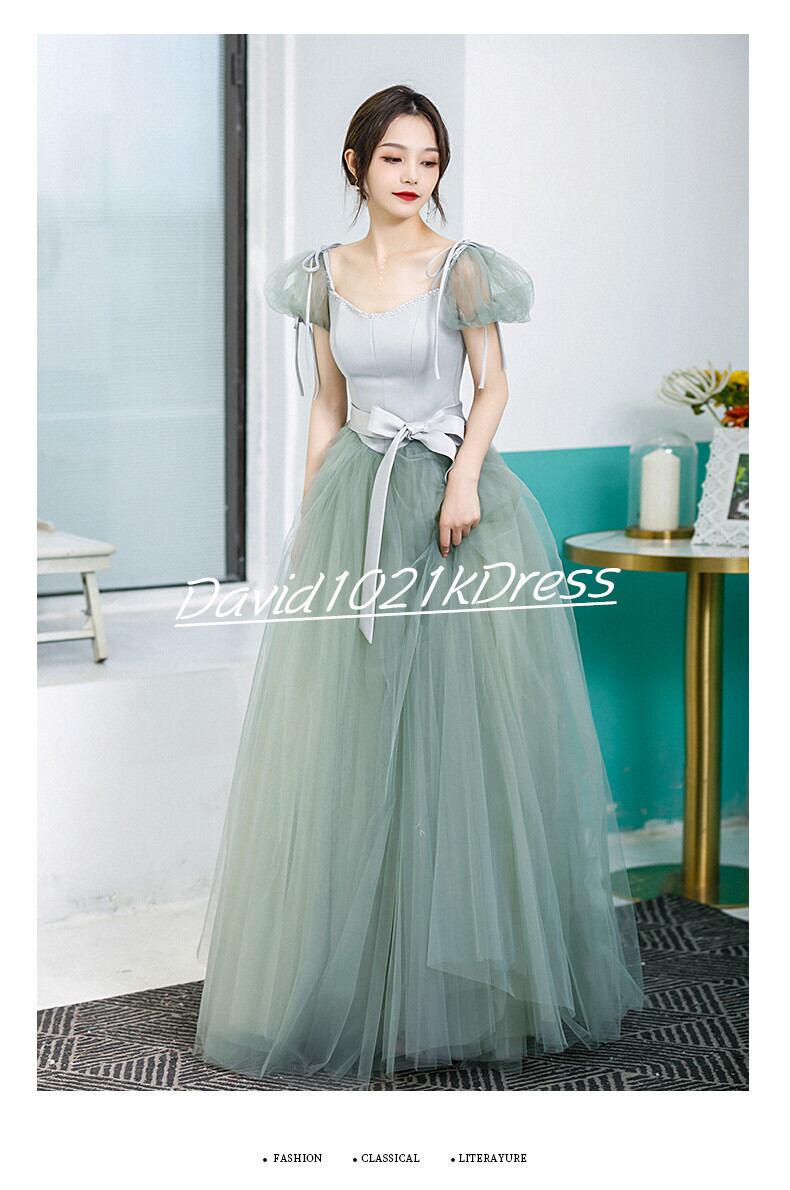 上品! パーティードレス 薄グリーン ソフトチュール 謝恩会