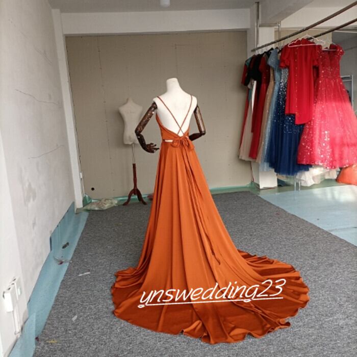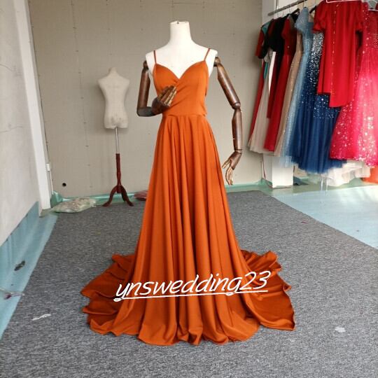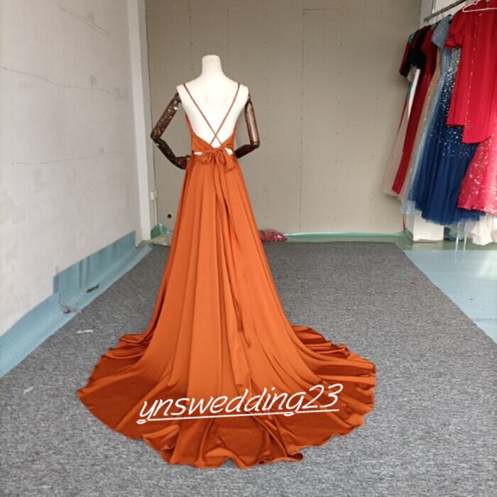 高品質!パーティードレス テラコッタ色 リボン 背中見せ 前撮り結婚式 2次会