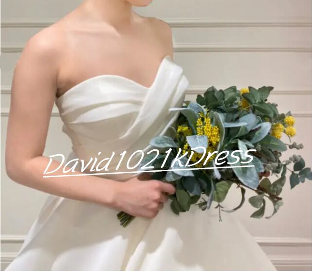 高品質! ウエディングドレス ホワイト ベアトップ 結婚式/披露宴