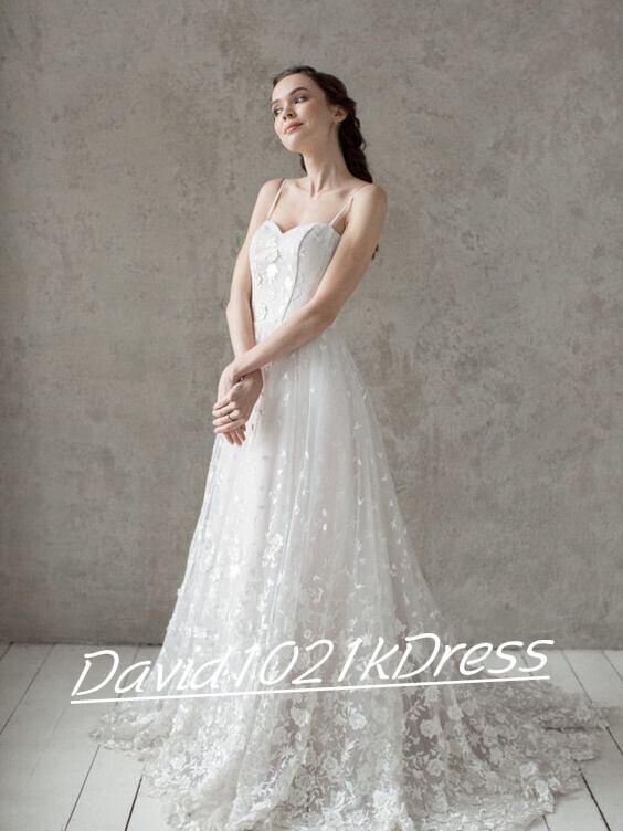 ウエディングドレス 3D立体レース刺繍 背中見せ キャミソール