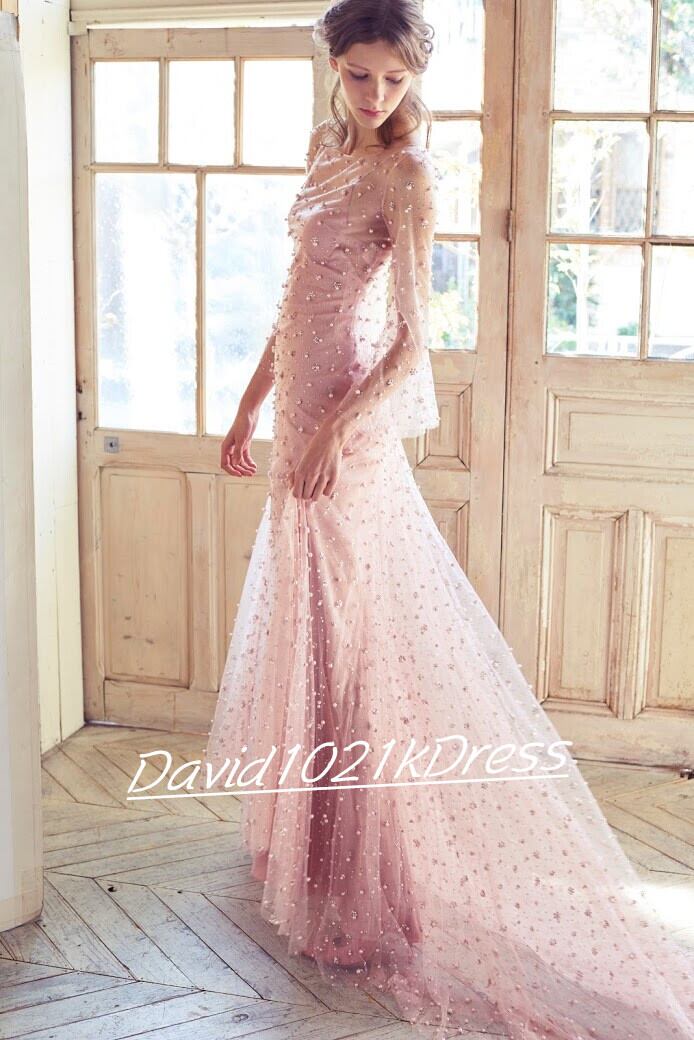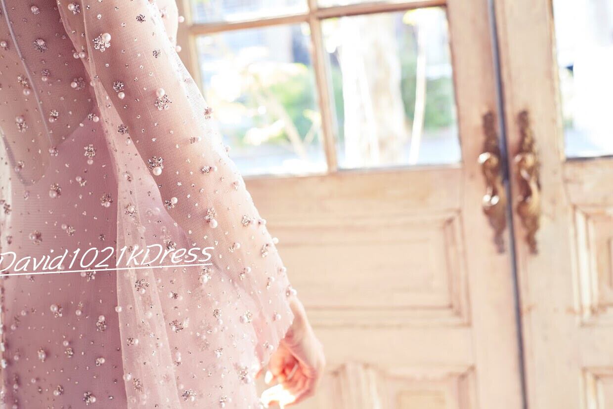 高品質! 豪華! ピンクカラードレス パール トレーン 結婚式