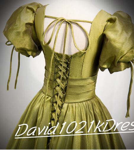上品! パーティードレス 绿色 パフスリーブ Vネック 2次会