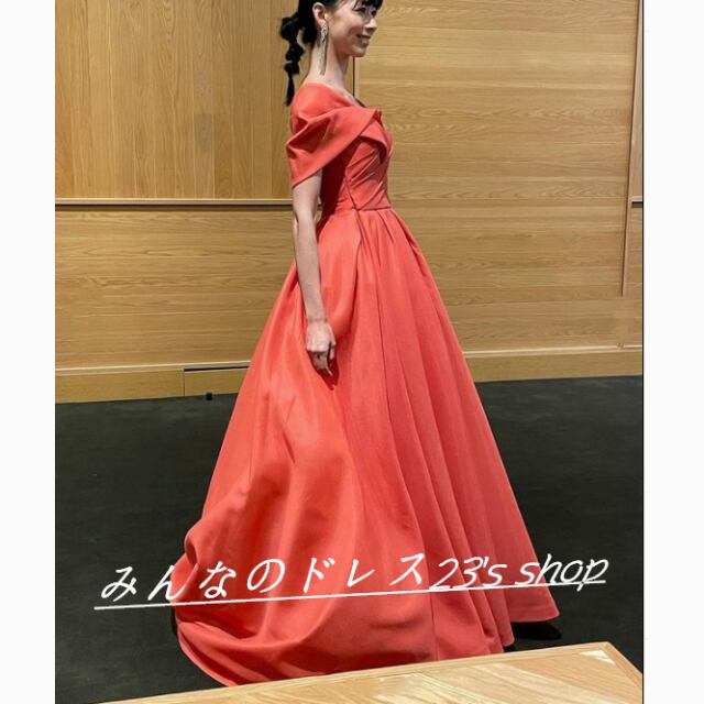 エレガント パーティードレス オレンジ オフショルダー トレーン