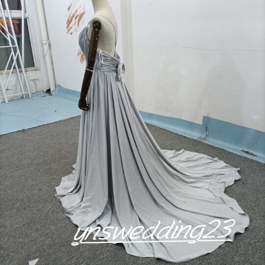 高品質 パーティードレス グレー トレーン キャミソール シアーな美しさ 2次会