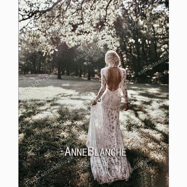 ウェディングドレス セクシー 背中見せ ロングスリーブ 前撮り