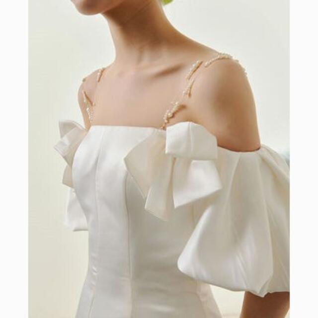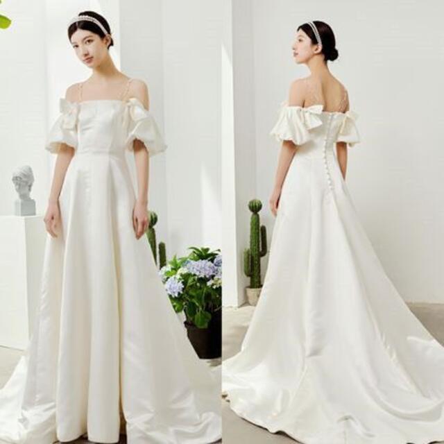 エレガント ウェディングドレス ホワイト パフスリーブ トレーン