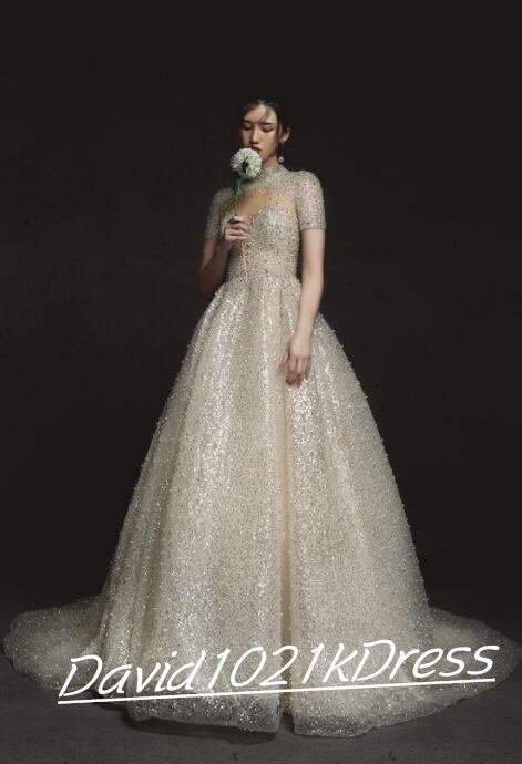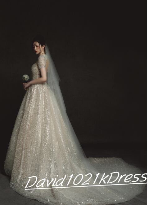 高品質! ウェディングドレス キラキラチュール 結婚式/披露宴 花嫁