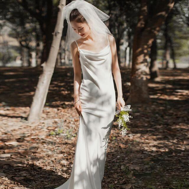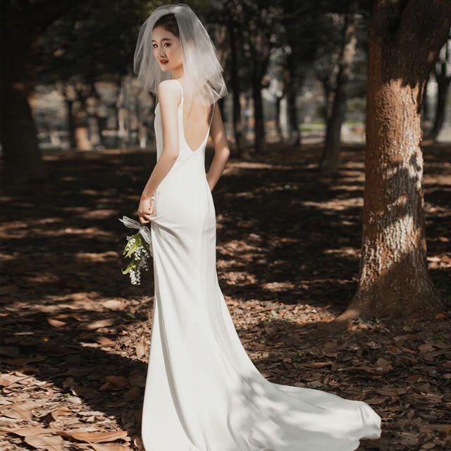 フランス風 ウェディングドレス キャミソール 前撮り 背中見せ