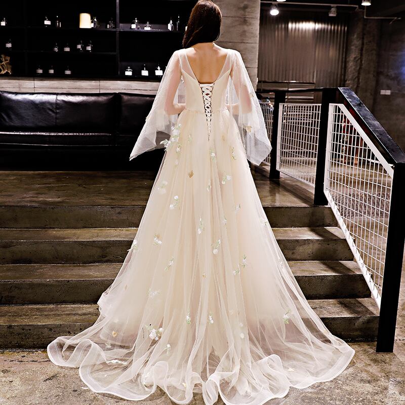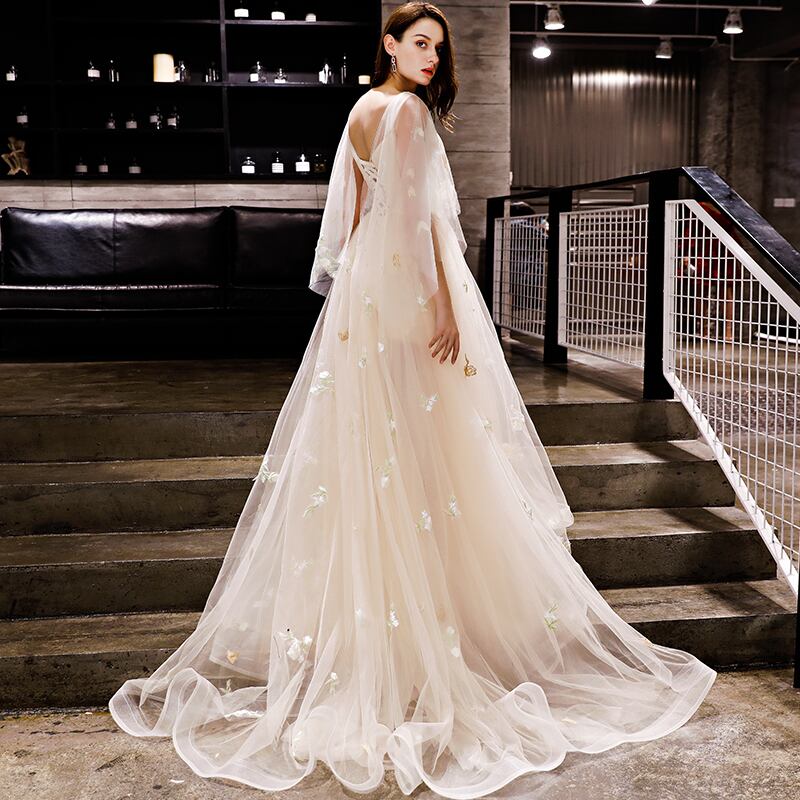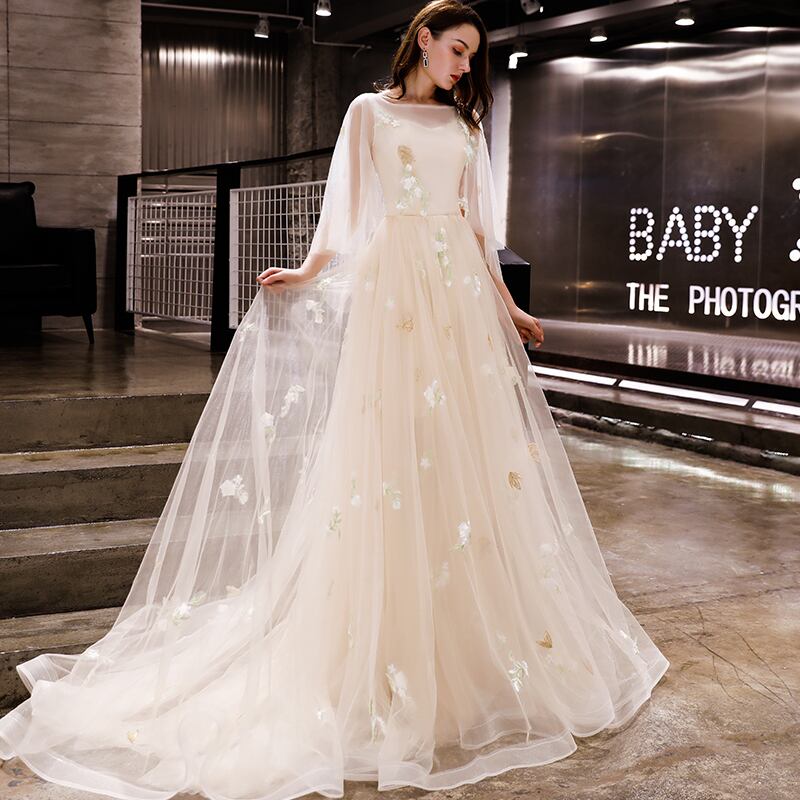 上品! パーティードレ ス シャンパン色 優雅なシルエット トレーン 二次会