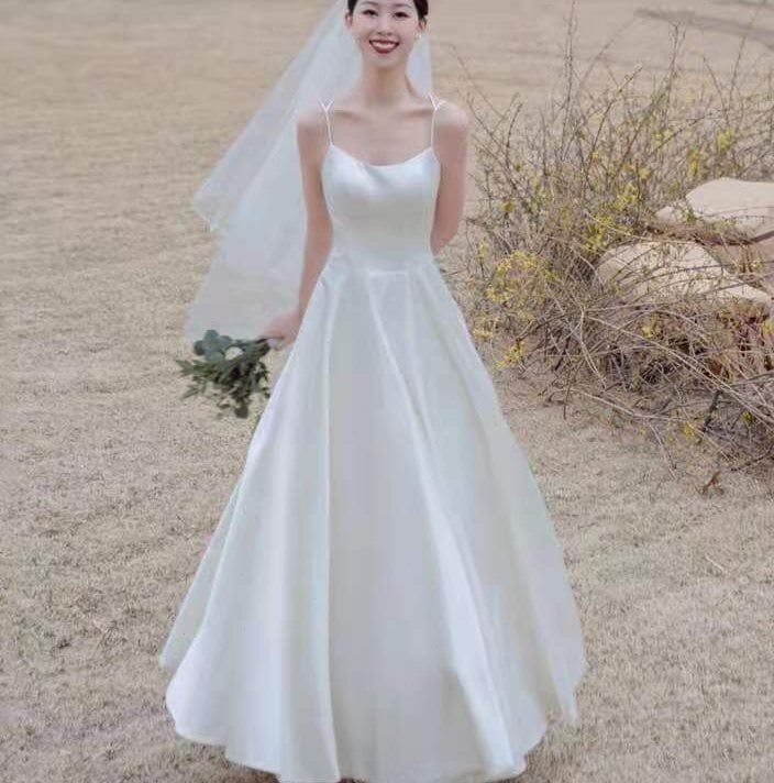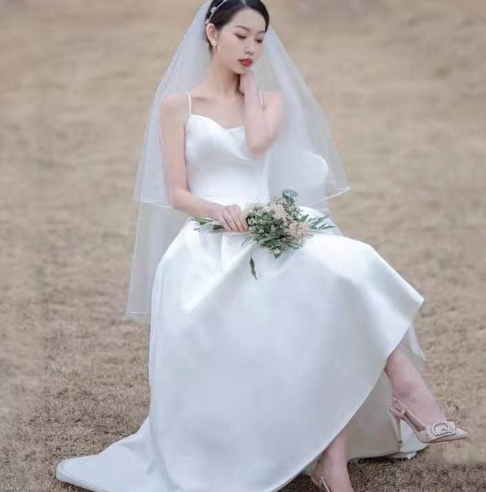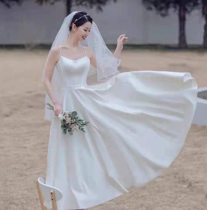 エレガント ウエディングドレス 前撮り お呼ばれ/二次会 背中見せ 花嫁