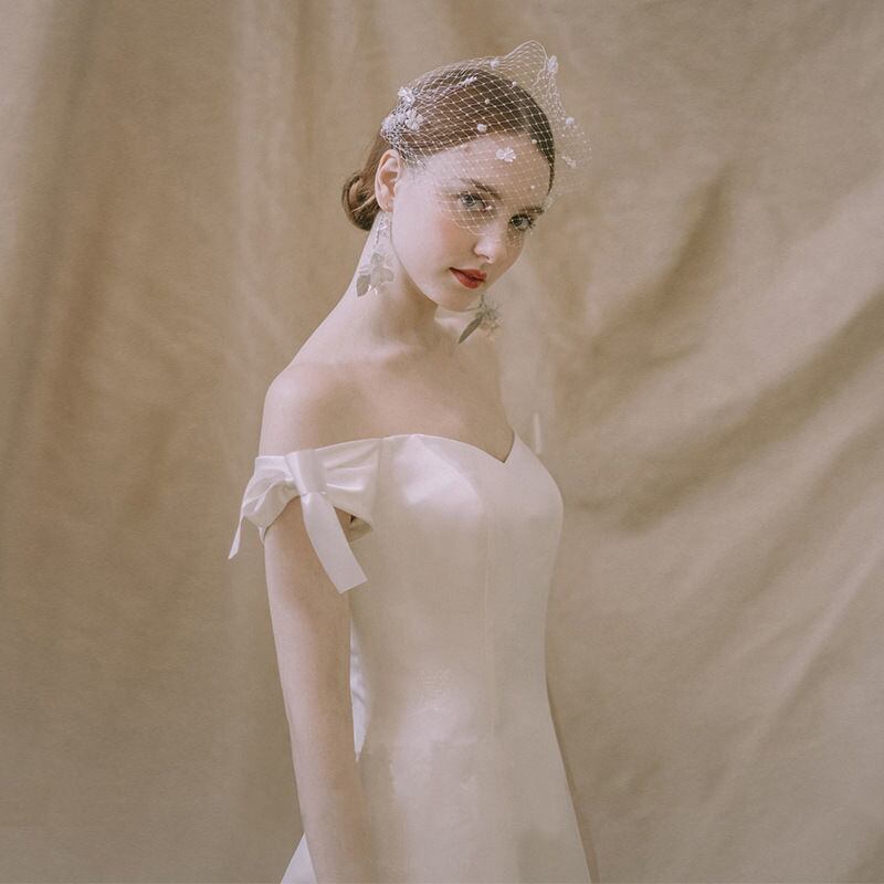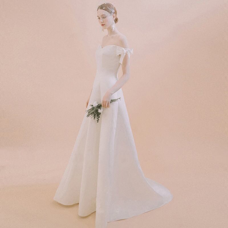 エレガント ウエディングドレス オフショルダー お呼ばれ/二次会 オフホワイト