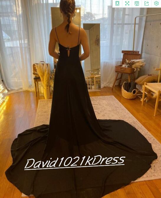 前撮り/結婚式ドレス 黑 キャミソール 背中見せ ロングトレーン