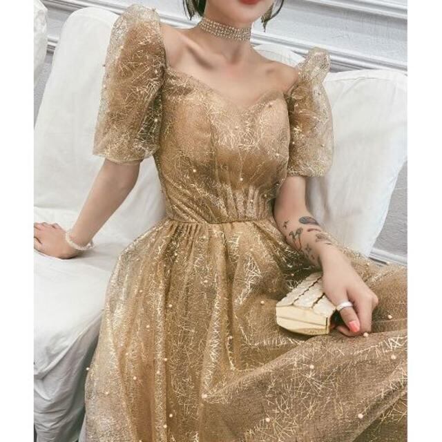 上品! パーティードレス シャンパン色 ロング Aライン エレガン