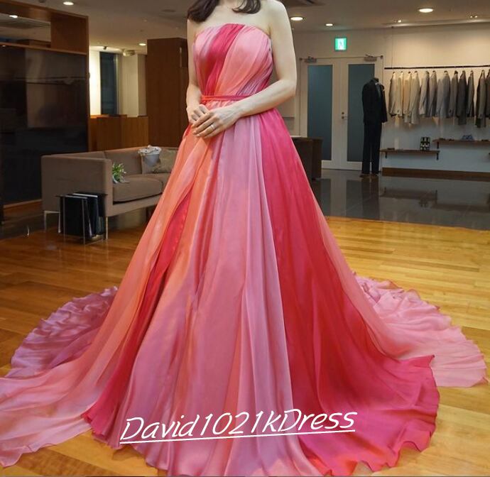 素敵なカラードレス 二色 抜群 のおしゃれ見え ロングトレーン 花嫁