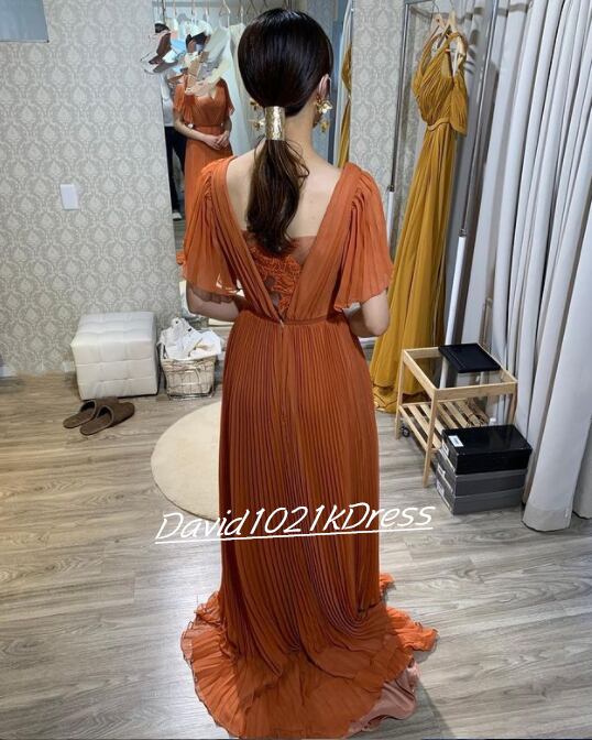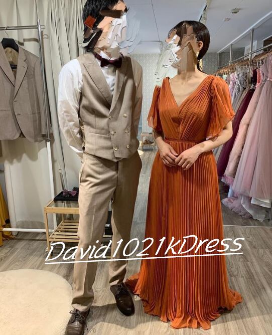エレガント パーティードレス テラコッタ色 トレーン お呼ばれ