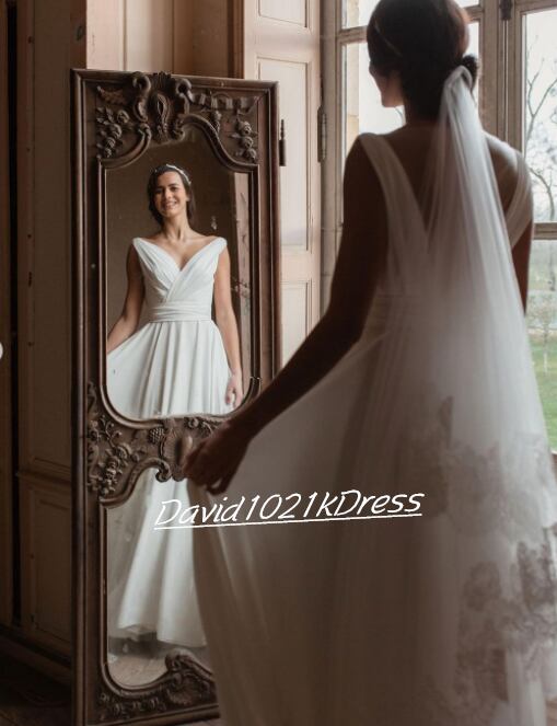 フランス風 ウェディングドレス 背中見せ 結婚式 Vネック 前撮り