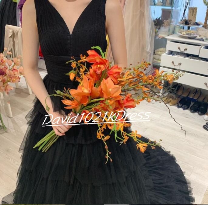 高品質! パーティードレス 黑 ソフトチュール 背中見せ 前撮り