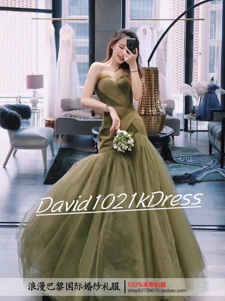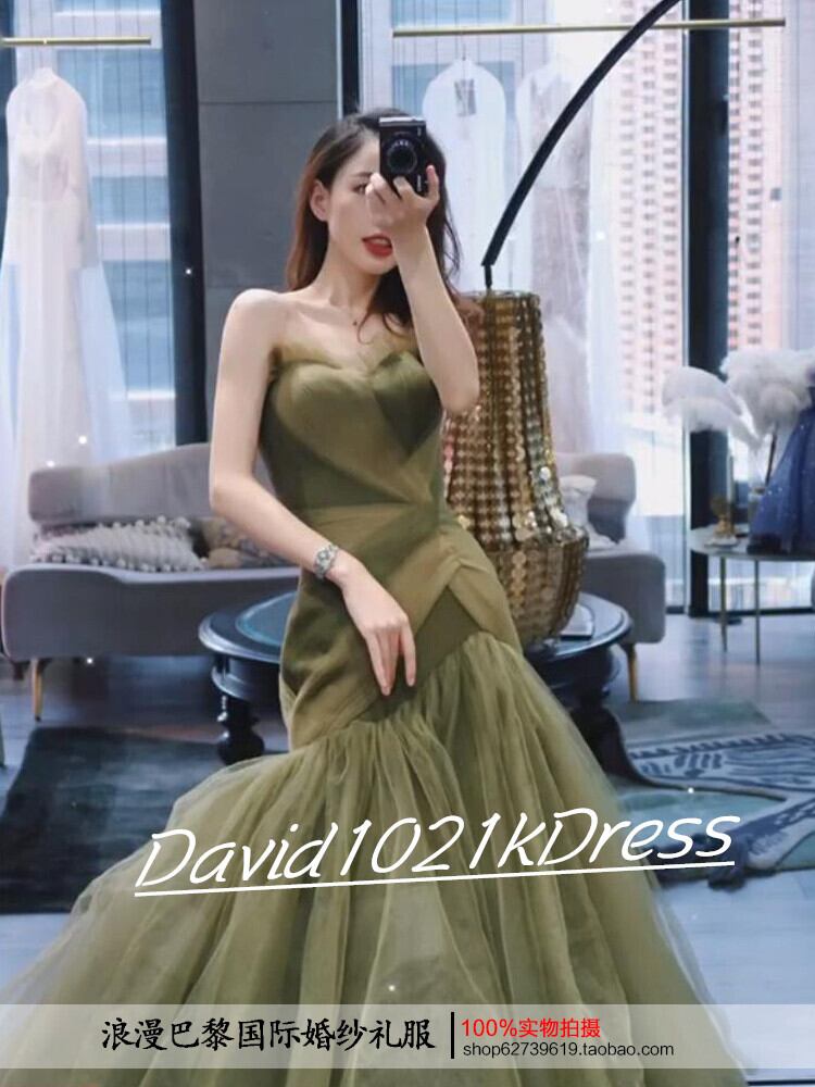 高品質! カラードレス ピスタチオカラー ベアトップ 結婚式 2次会