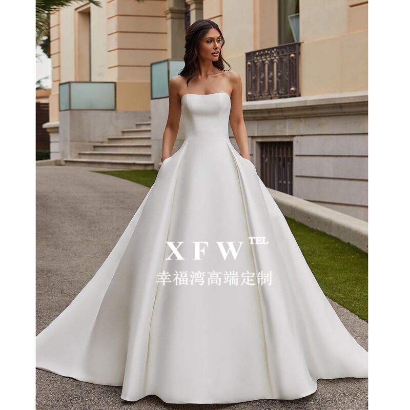 フランス風 ウェディングドレス ホワイト ベアトップ トレーン 2次会