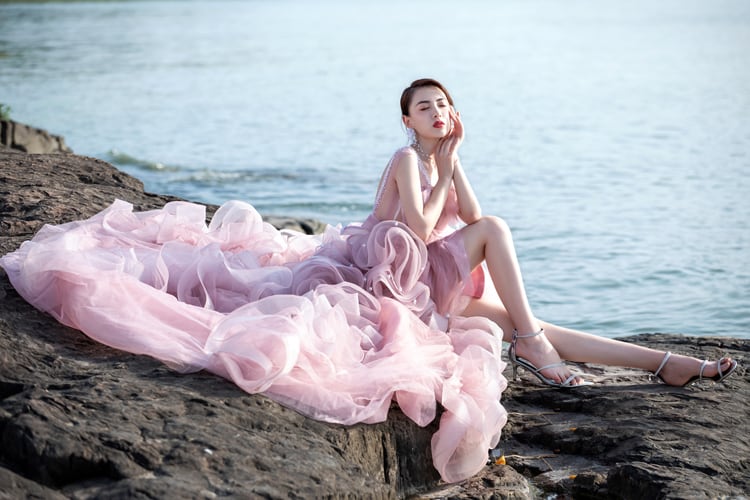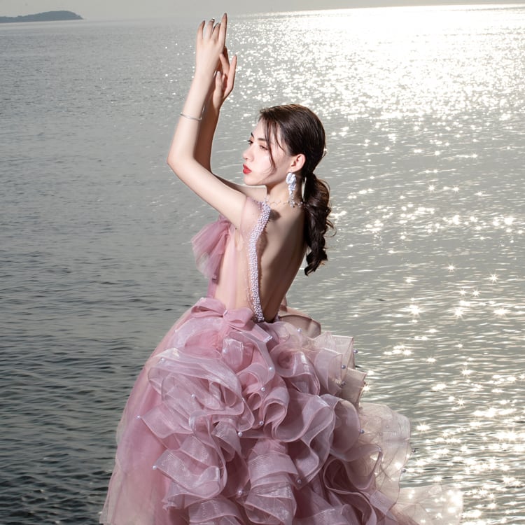 カラードレス ピンク 上質オーガンジー パール フィッシュテール 結婚式/披露宴