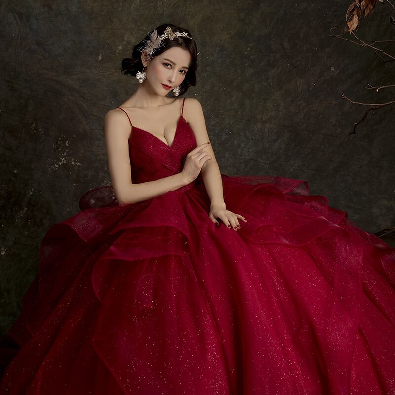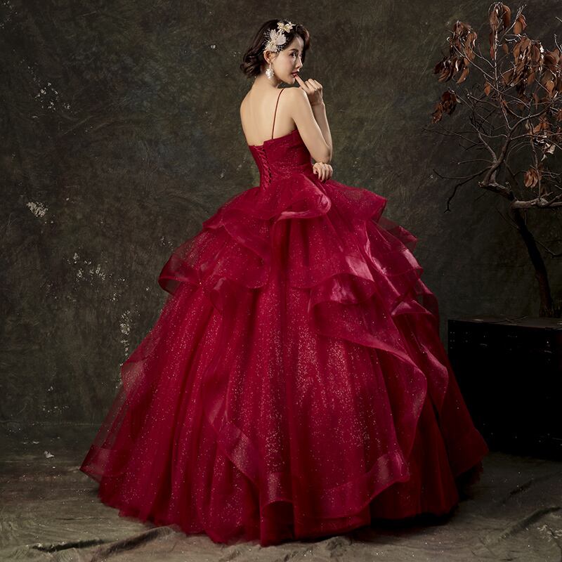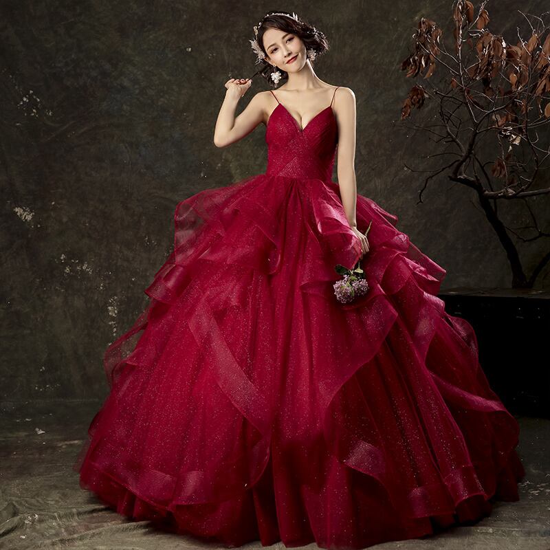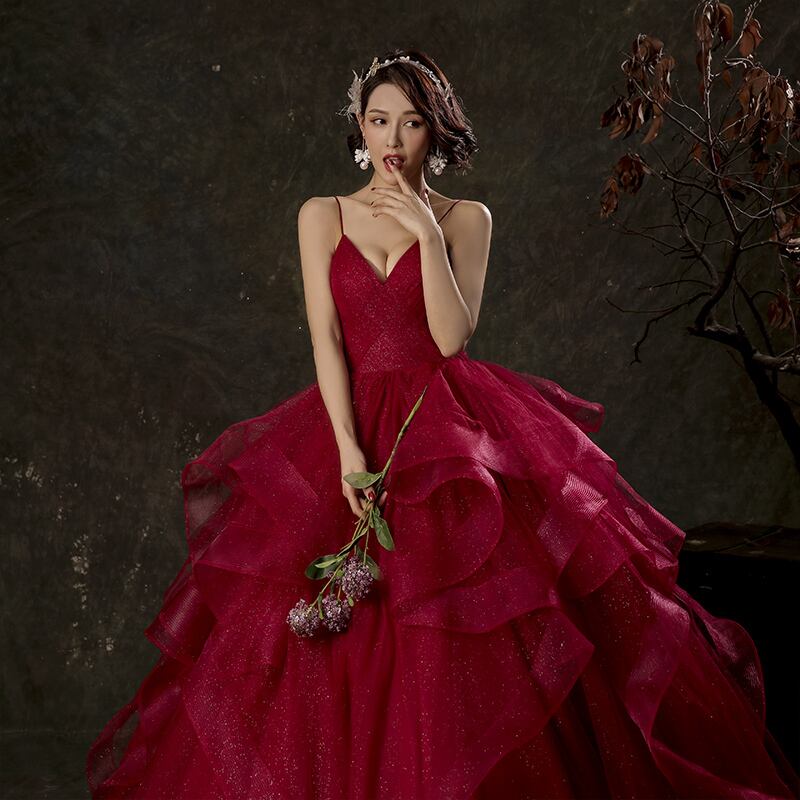 上品! パーティードレス ワインレッド キャミソール Vネック キラキラチュール