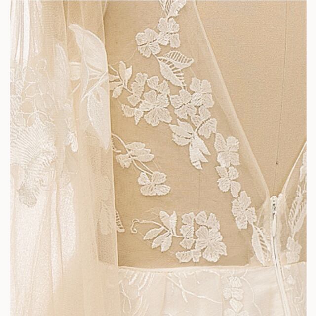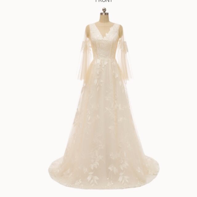 Vネックドレス 総レース ウエディングドレス シャンパン色 高級刺繍