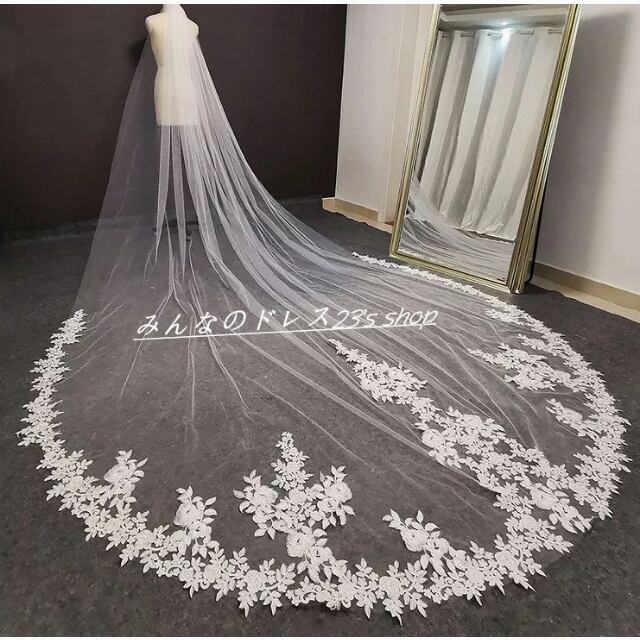 ウエディングドレス ホワイト 3D立体レース刺繍 ベール 結婚式
