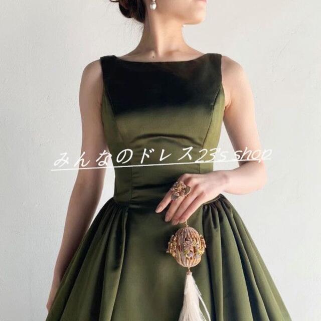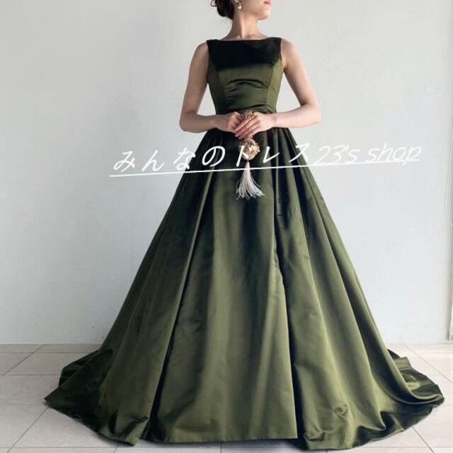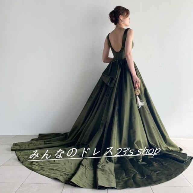 高品質! カラードレス 深めな緑 背中見せ トレーン 結婚式