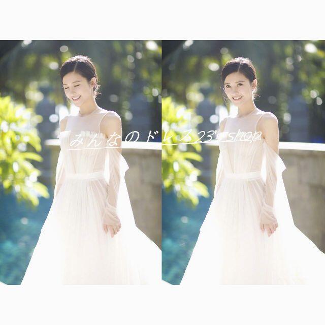 高品質! ウエディングドレス ソフトチュール オフショルダー