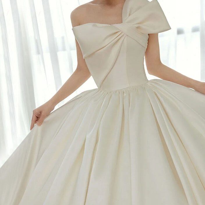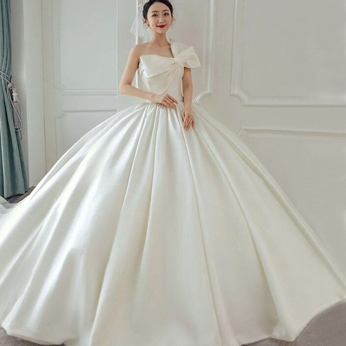 フランス風 ウエディングドレス ホワイト サテン 結婚式/披露宴