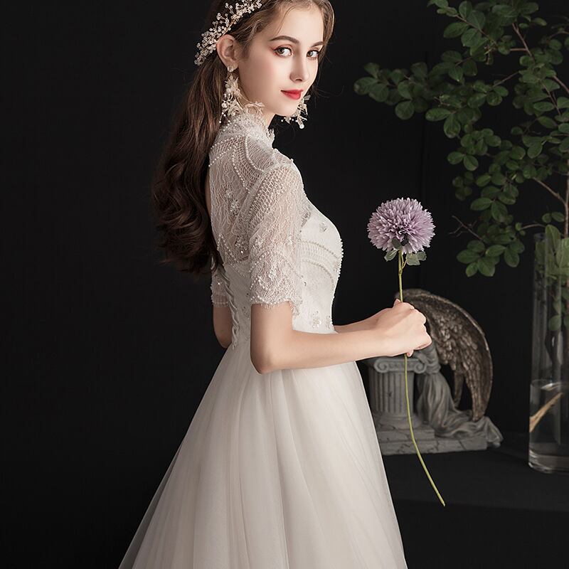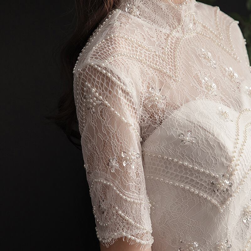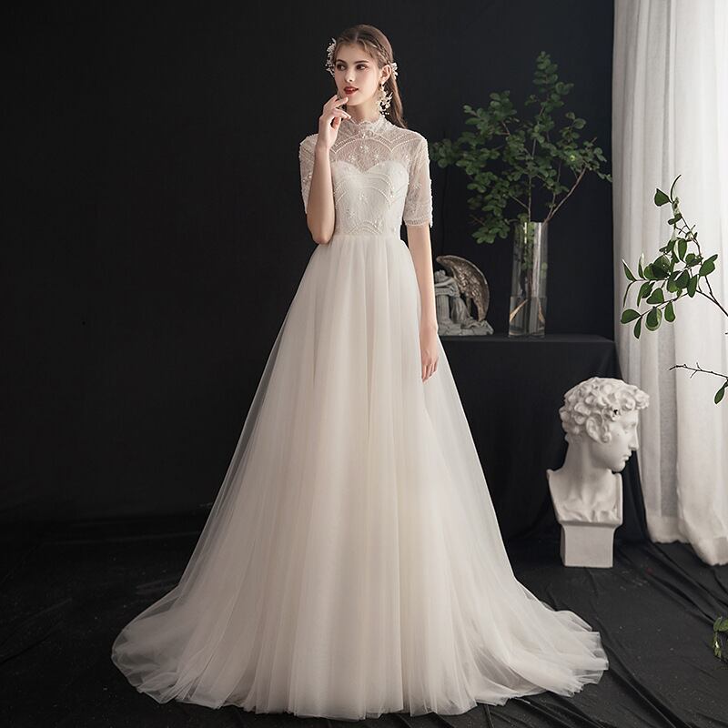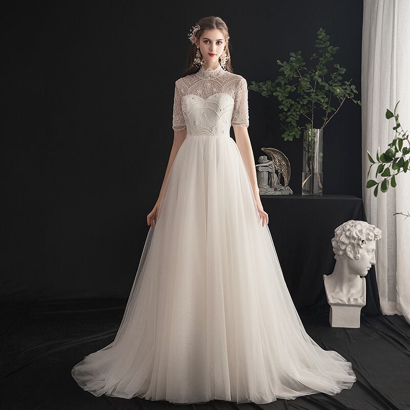 高品質! ウエディングドレス 3D立体レース刺繍 パール ソフトチュール 結婚式